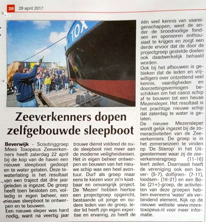 13 april 2017 Nieuwe boot voor Mees Toxopeus zeeverkenners – TVM foundation